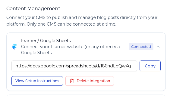 We will be covering exactly how to setup on Framer, but this can work for any major CMS that can import from Google Sheets.
