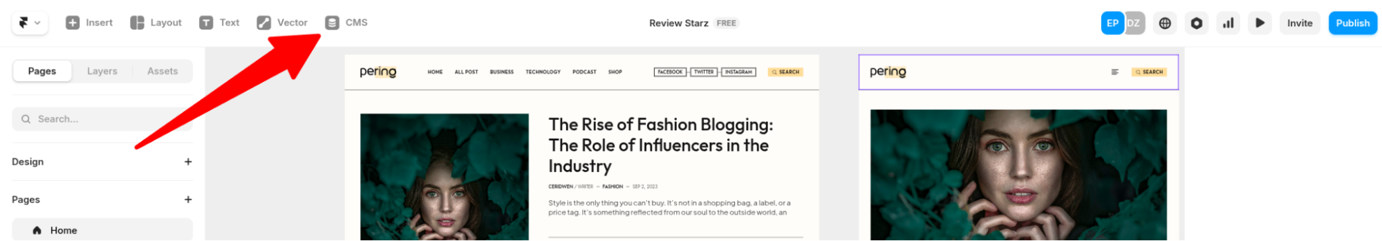 Set-up a blog page following up your existing design that reads from our CMS collection.